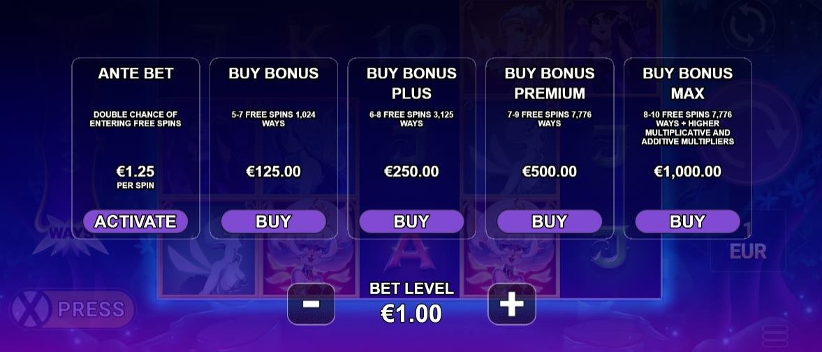 ボーナス購入メニューから、次のボーナス ラウンドを購入できます。