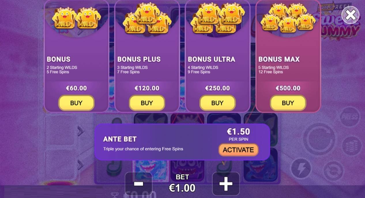 4つのボーナス購入とアンティベットが用意されています。をアクティブに