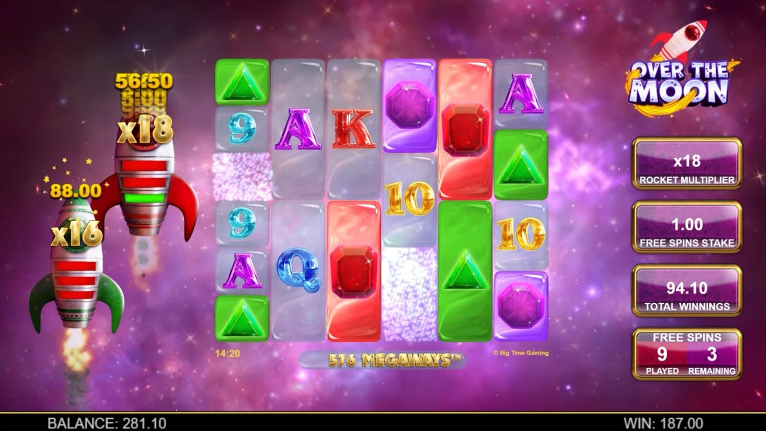 このフリースピンでは、無制限のロケットマルチプライヤーを利用することができ、ロケットが到着するたびに連続的に増加します。