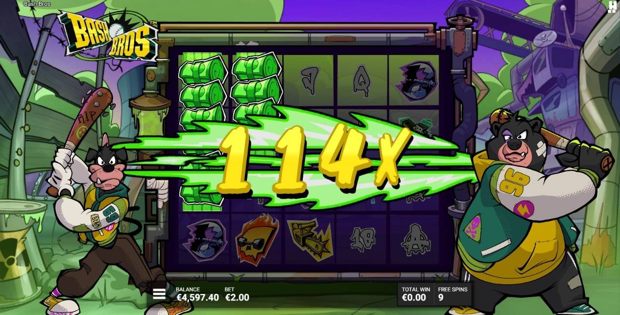 すべてのカスケードが終了し、リール上に少なくとも1つのキャッシュスタックが存在すると、バッシングブラザーズが発動され、キャラクターの1人または両方がアクションを起こすことがあります。