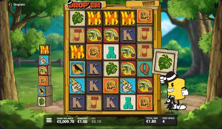 スキャッターシンボルが 5つ揃うと、ワイルドドロップスピンボーナス機能が有効になり、10回のフリースピンを獲得できます。
