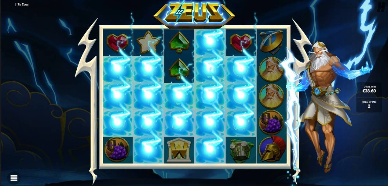 フリースピンスキャッターシンボルが4つ同時に出現すると、ゼ・ゼウスがハンドルを握るにアップグレードされ、4回のフリースピンが付与されます。