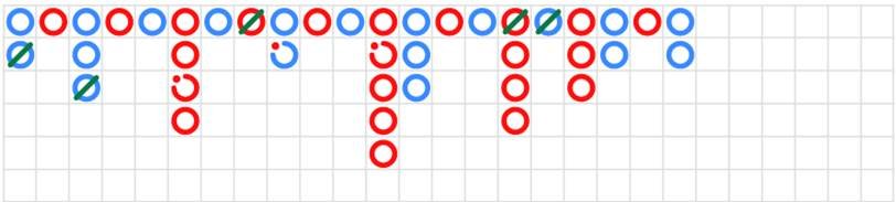 バンカープレイヤーの連勝を見やすく表示します。古いゲームの結果は左上に表示され、連勝が途切れたら新しい列に記録されていきます。