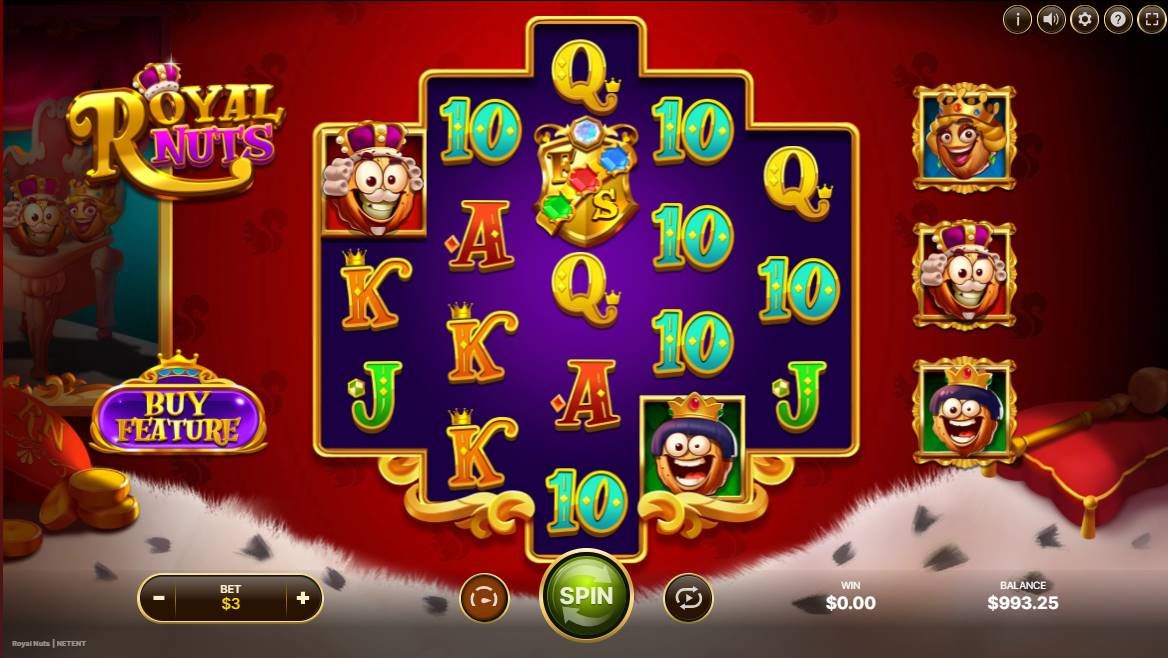 ロイヤルナッツが主役で、それぞれがワイルドシンボルに変身してゲームに彩りを添えます。