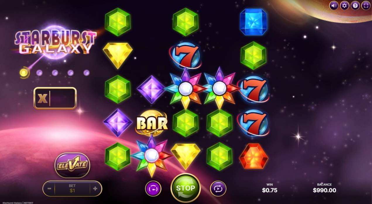 『Starburst Galaxy』は、スピンするたびにエキサイティングなプレイが楽しめるスロットです。