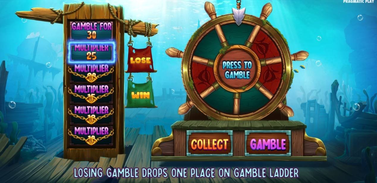 スキャッターシンボルを 4、5、6、 7つ着地させたかに応じて、それぞれ 15、20、25、30倍の保証されたマルチプライヤーでギャンブル機能を開始します。