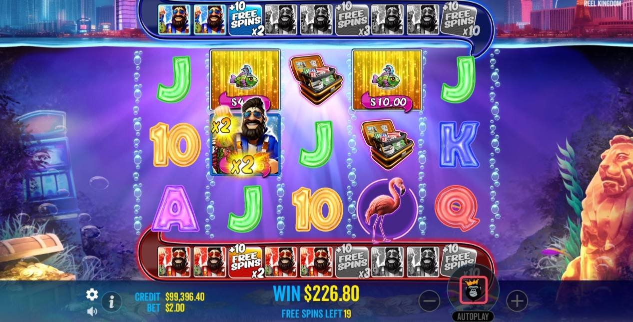 12人目のフィッシャーマンワイルドを集めると、集めたすべてのフィッシュシンボルに対して10回の追加フリースピン+ 10倍のマルチプライヤーを獲得できます。