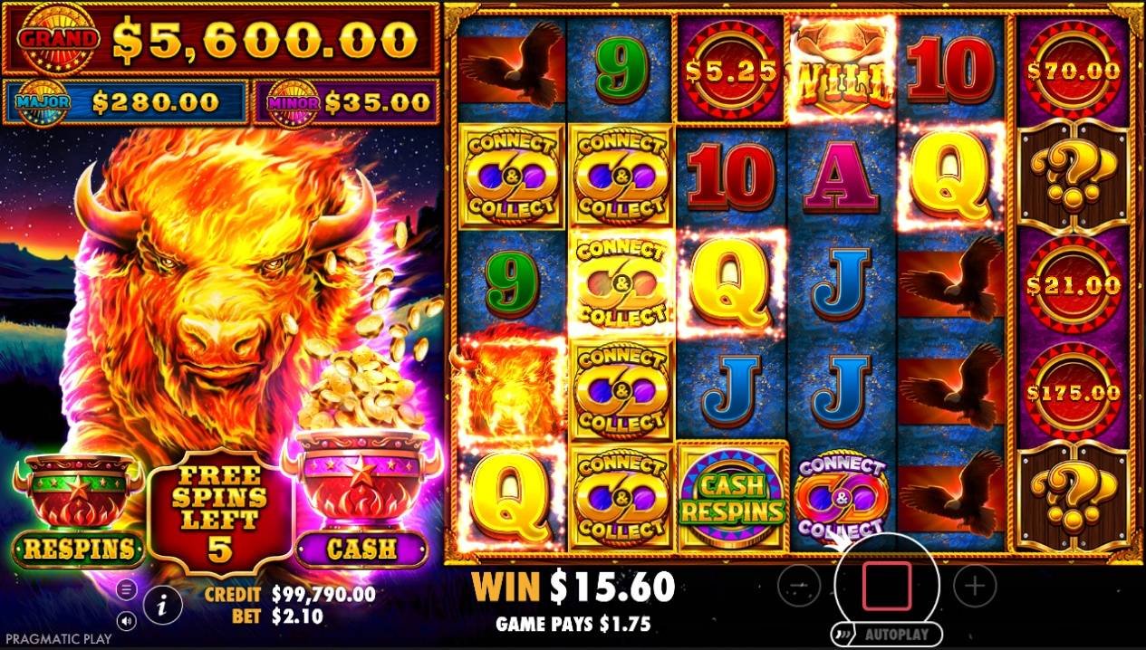 リスピン終了時に、すべてのバッファローマルチプライヤーが合算され、配当が支払われます。