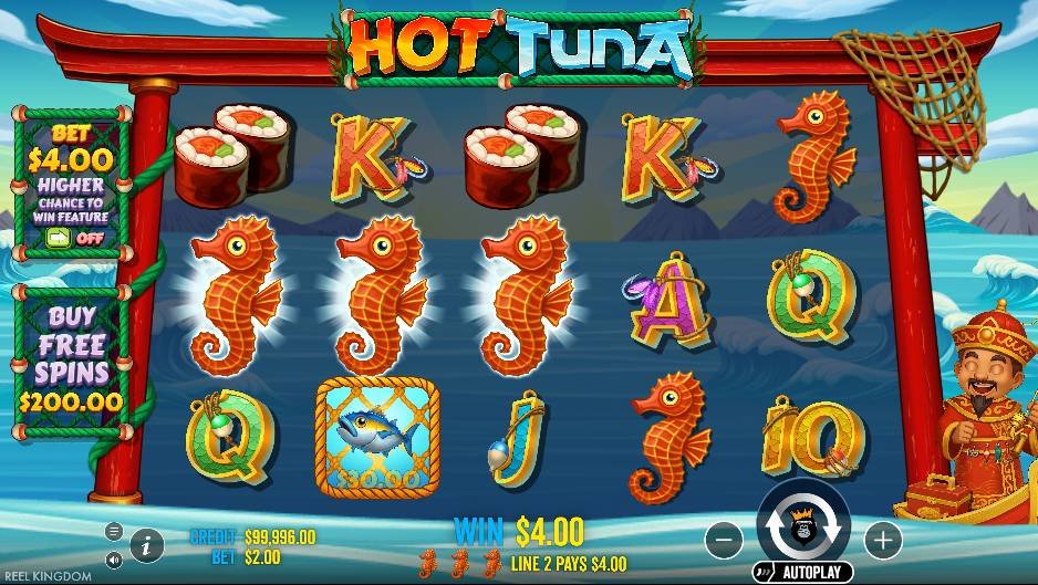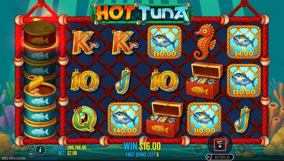 7つのレベルすべてがヒットすると、+10回の追加フリースピンが再獲得でき、各フリースピン中にホットツナシンボルがランダムに出現することがあります。