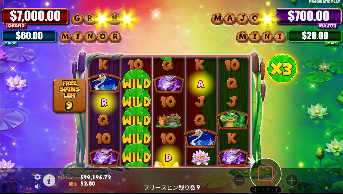 自然の驚異が待っています。色とりどりのヒキガエルがリールを支配し、ワニ、白鳥、魚、睡蓮の葉ワイルドなど、湖の住民を組み合わせて印象的な勝利を生み出しましょう!