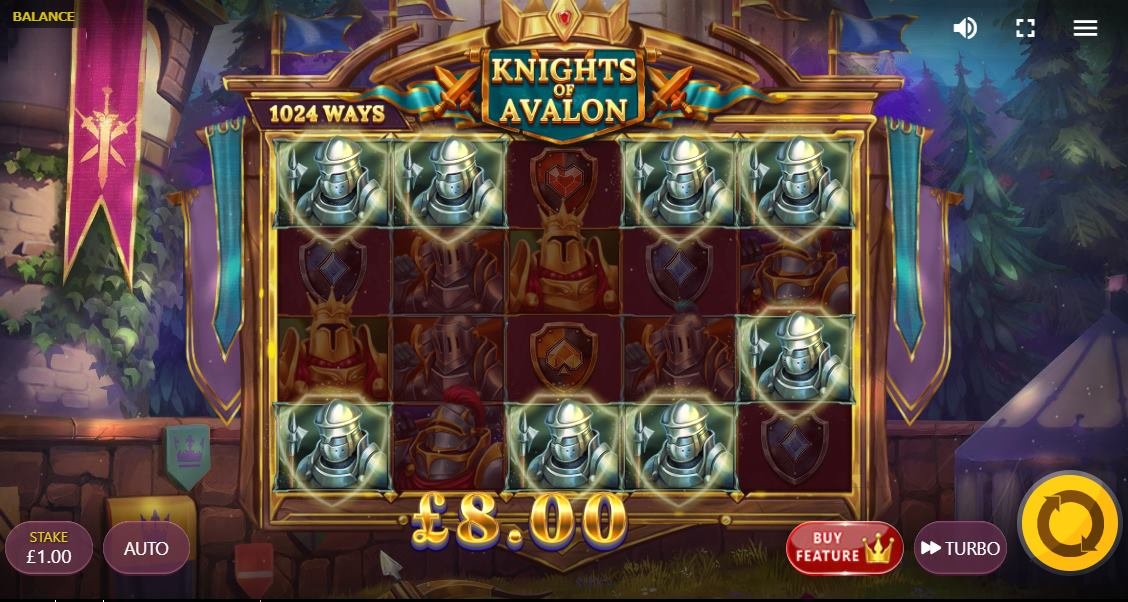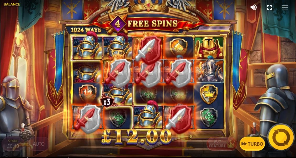 スピン中ランダムで、最大6個の同じ騎士シンボルタイプがナイツドロップを介して着地する可能性があります。