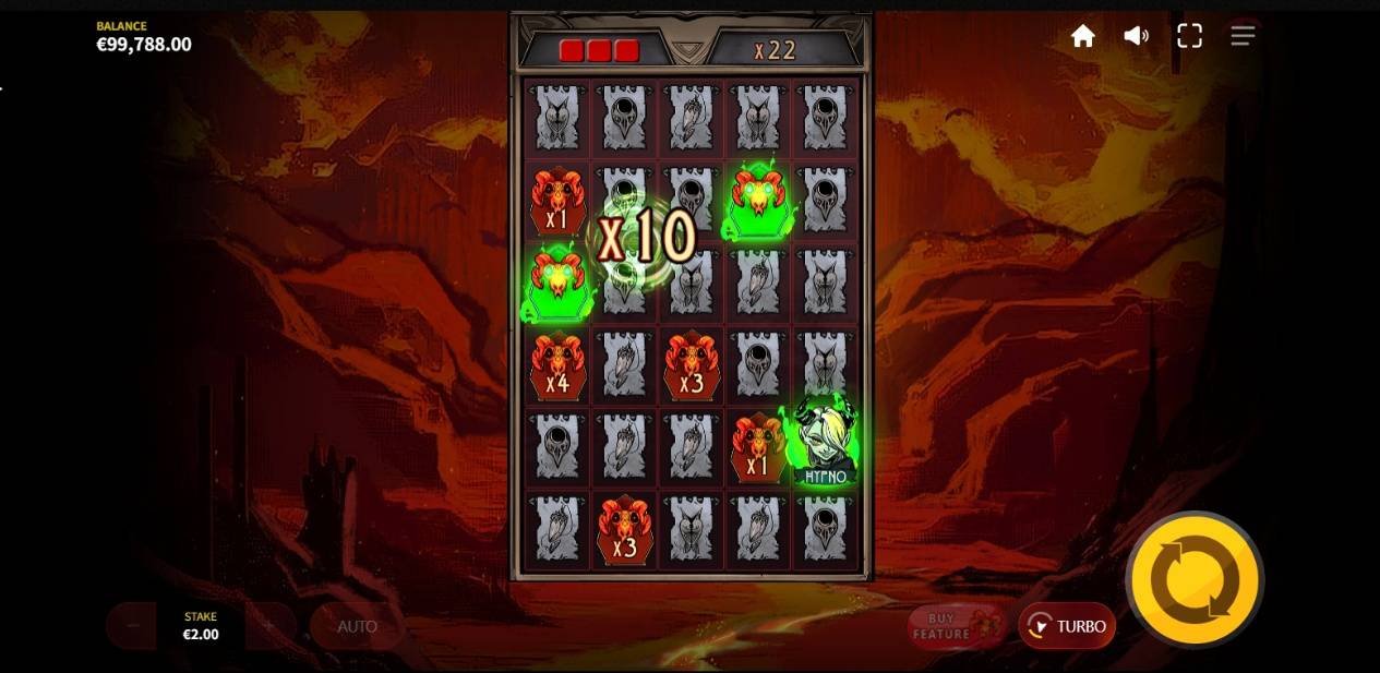 5×6リール、スキャッターペイのスロットで、リール上の任意の場所に8つ以上の同じシンボルが揃うと勝利となります。