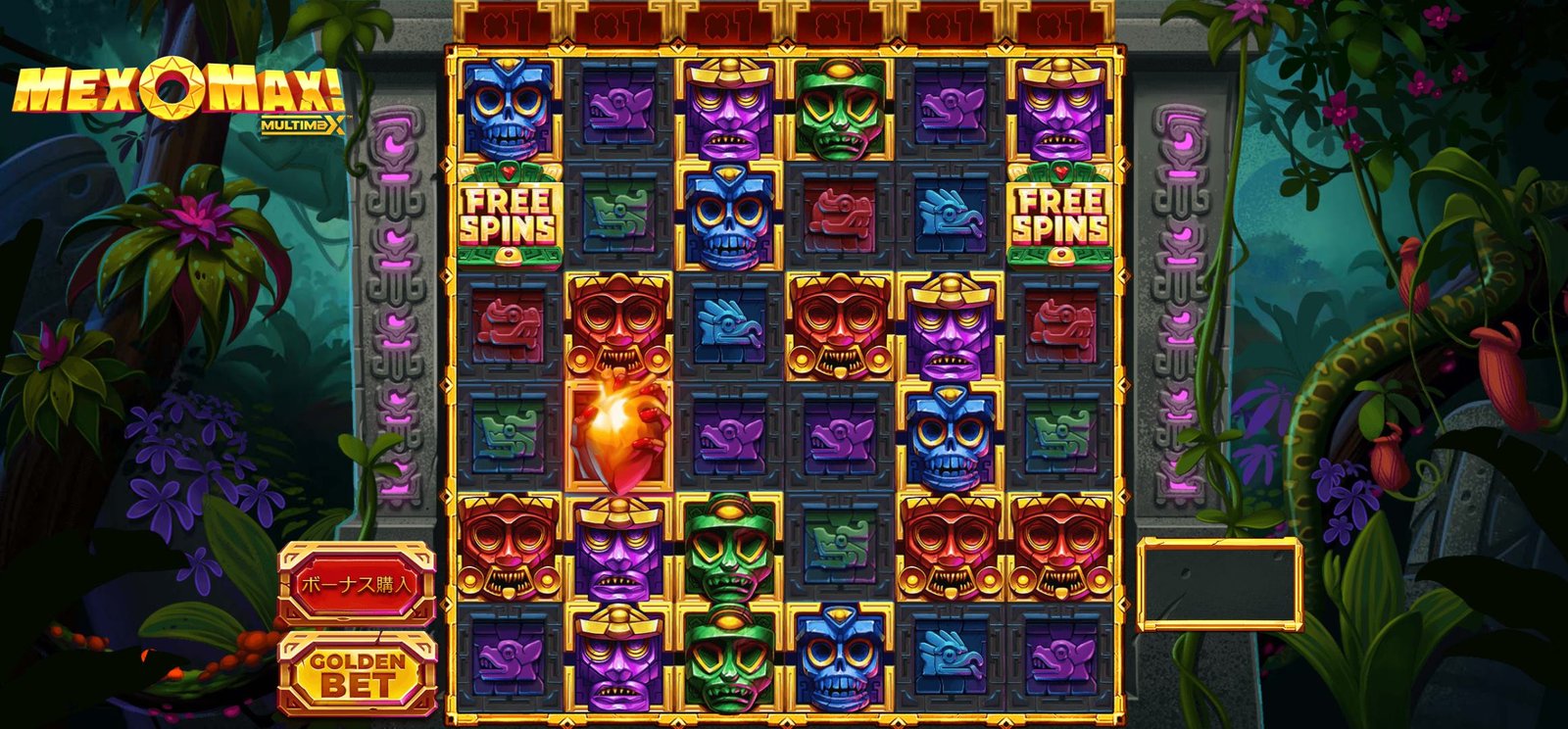 『MexoMax!』で勝つたびにワイルドとマルチプライヤーが発動されるジャングルの奥深くまで冒険しちゃいましょう!