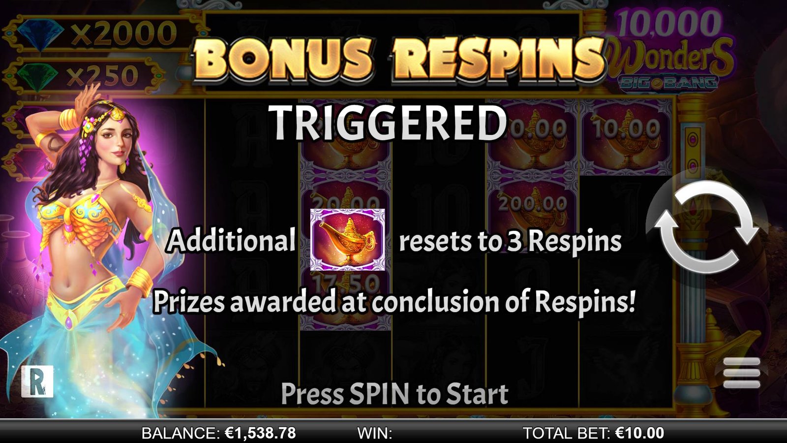 3回のリスピンで、残りのポジションがリスピンしている間、すべてのランプシンボルが保持されます。