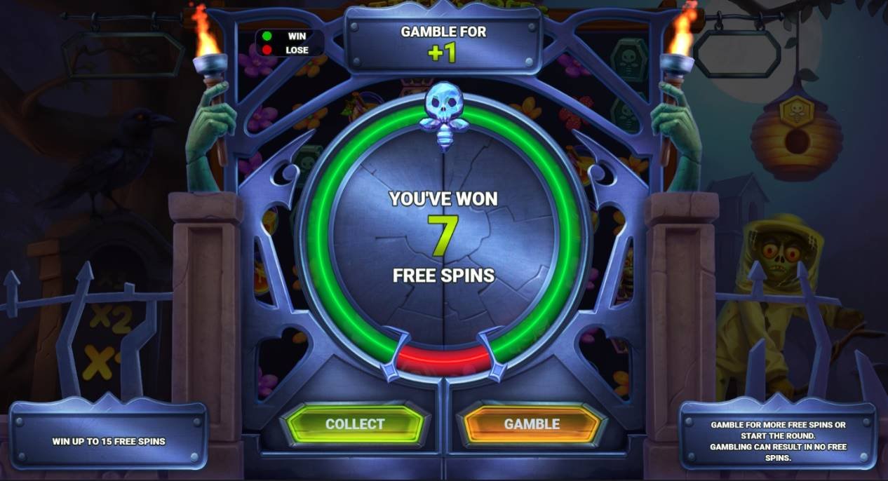 これは、フリースピンごとにハイブを保証し、フリースピンギャンブルで、最大15回のフリースピンを獲得できるチャンスがあります。