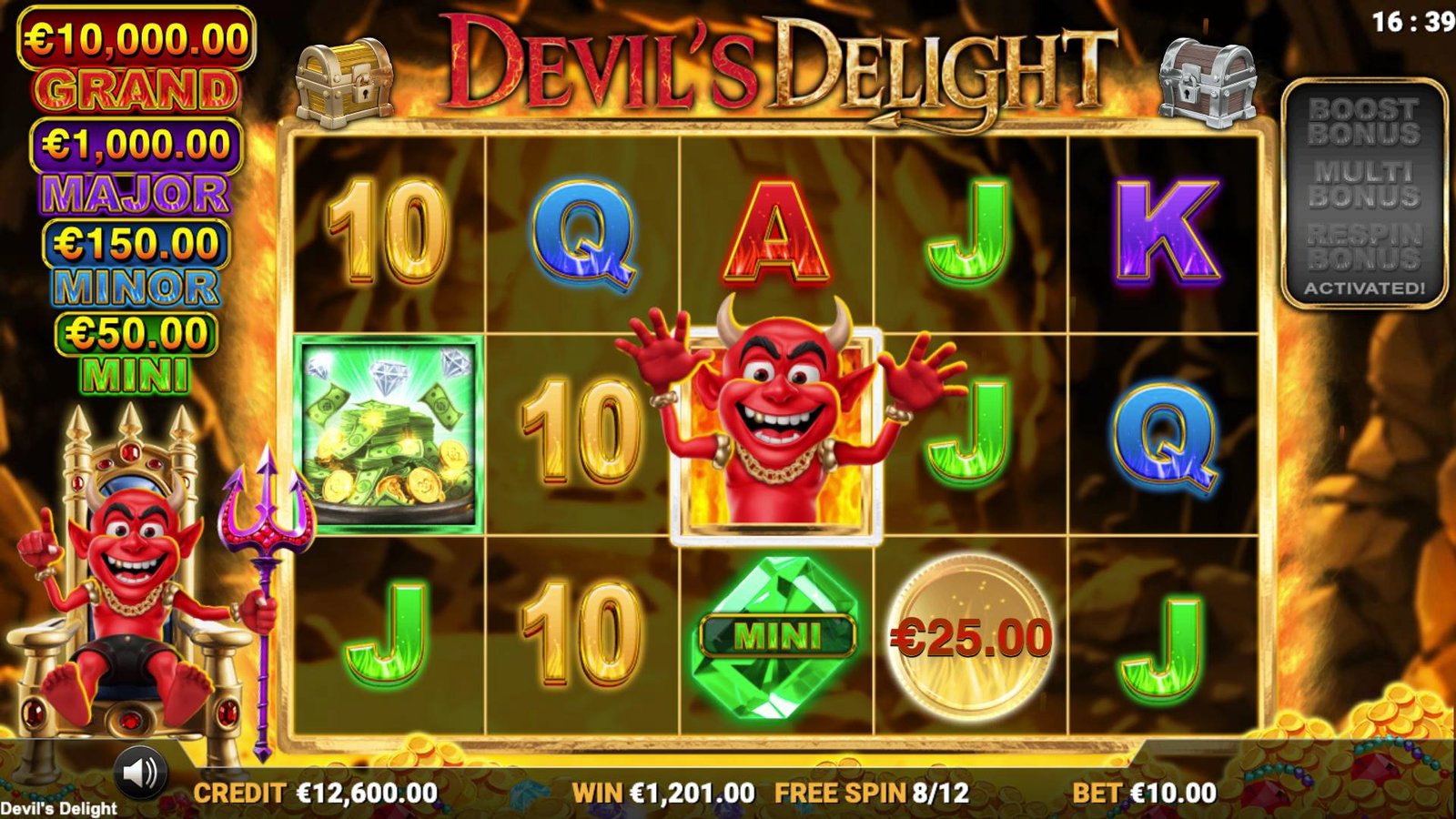 ワイルドデビルシンボルが出現するたびに、画面右隅のブーストボーナスに加算されます。