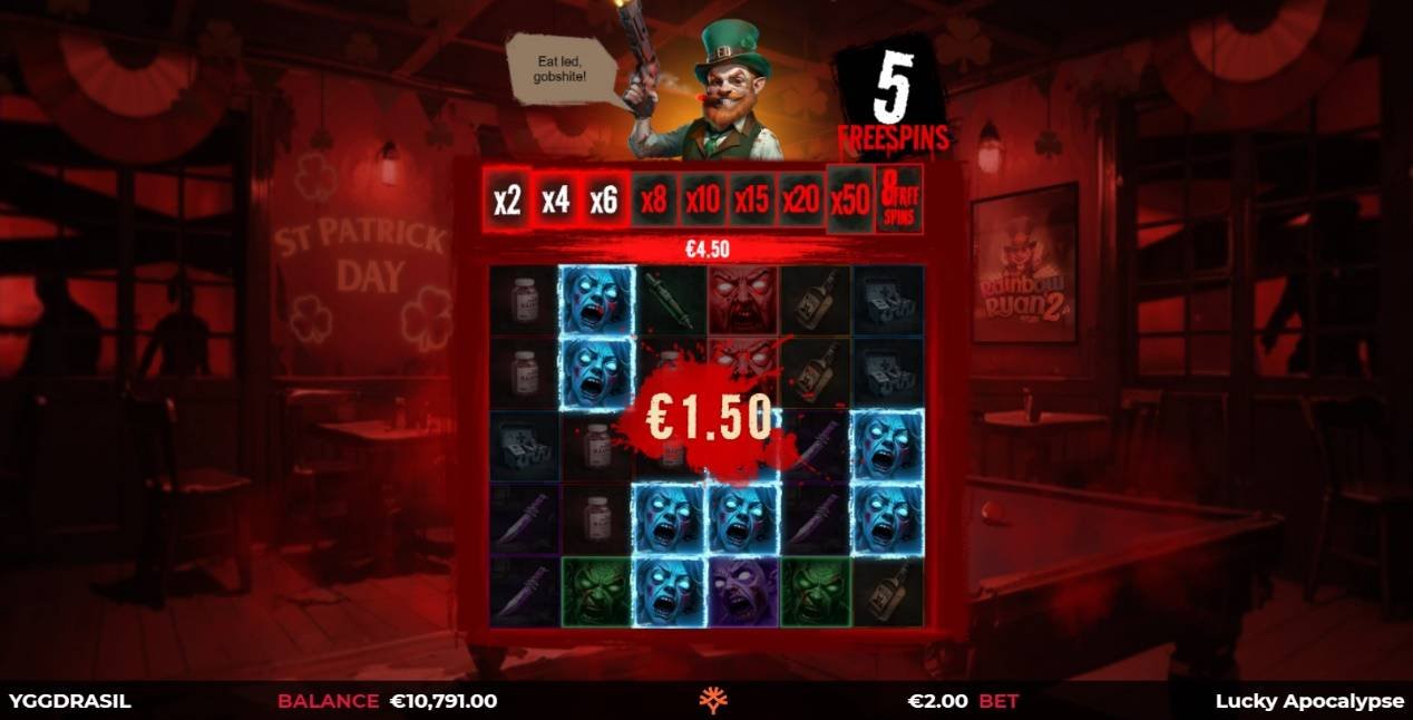 ゾンビをテーマにしたアクション満載のスロットで、レプラコーンを主役に据えています。