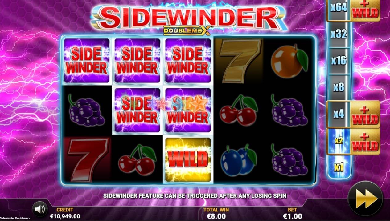 サイドワインダー機能は、スピンが失敗した後にランダムに発動されます。このサイドワインダー機能中、リールはシャッフルを受けて勝利の組み合わせが形成されます。