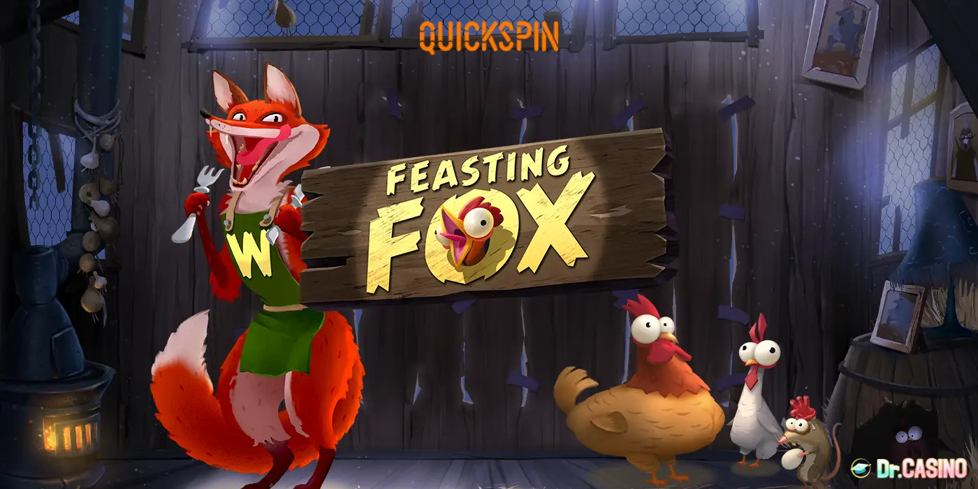 Quickspinより、2023年7月11日にリリースされた最新スロット『Feasting Fox』の紹介記事。居心地の良い小さな小屋にひっそりと佇む雌鶏の群れは、外に潜む危険にも気づかず、幸せそうにくつろいでいます。お腹を空かせたキツネが雌鶏を待ち伏せして狙っていますよ!スリル満点の農場の冒険を体験しましょう。